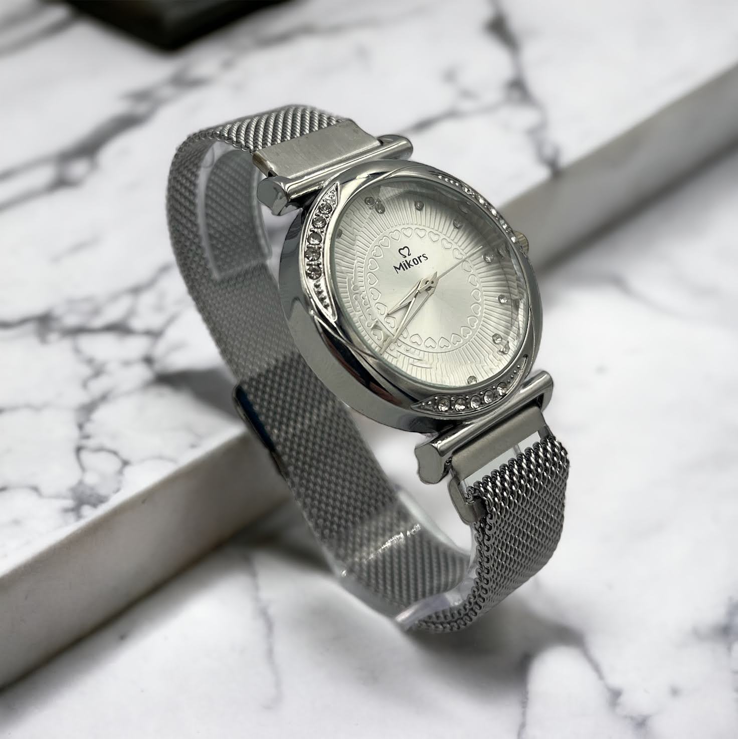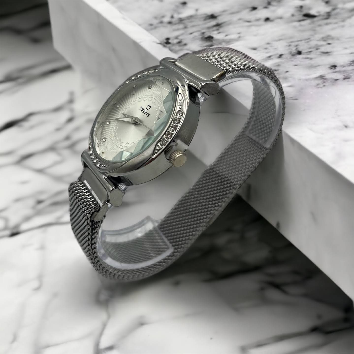 Zegarek z bransoletą z zapięciem magnetycznym.