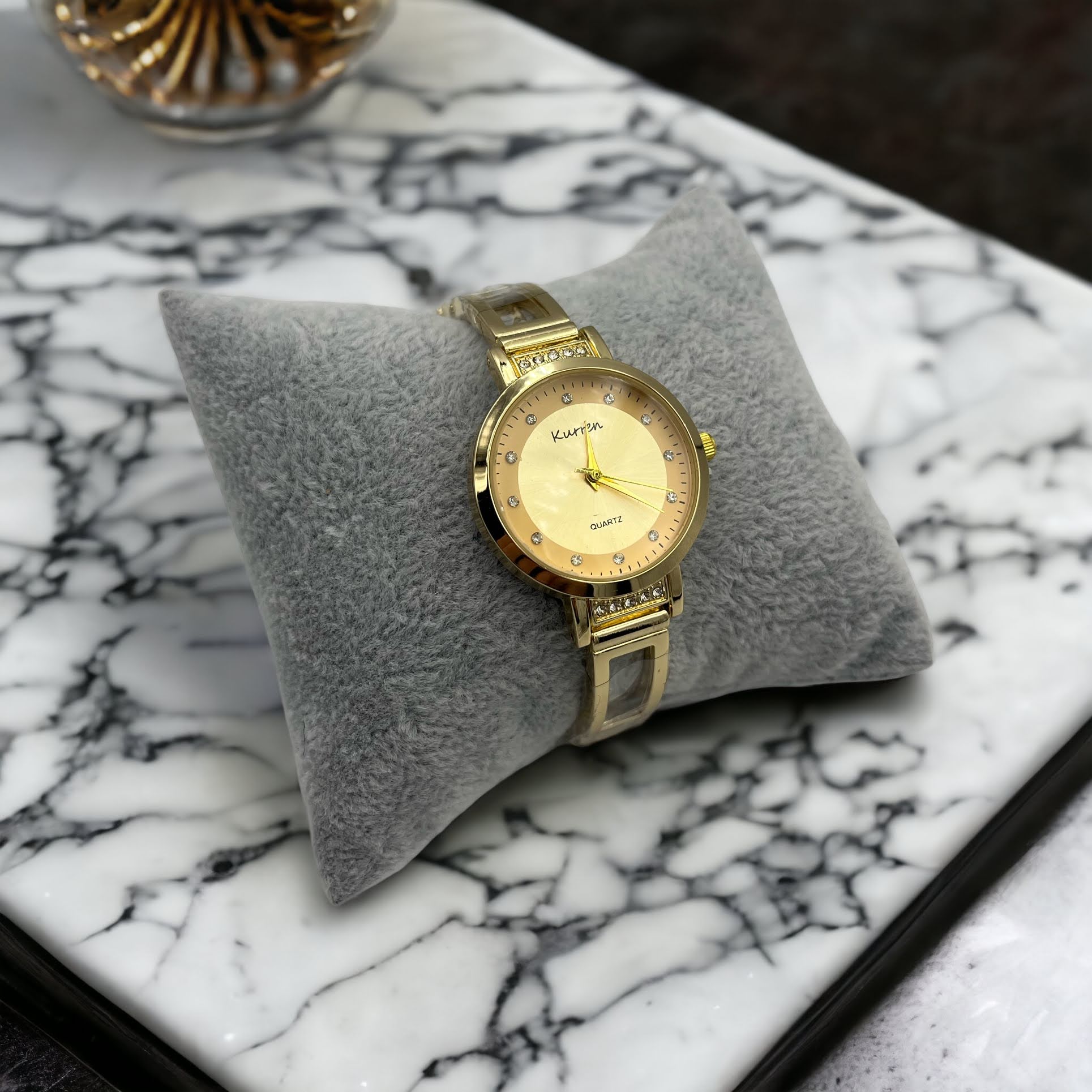 Zegarek damski złota bransoleta klasyczny złoty cyrkonie