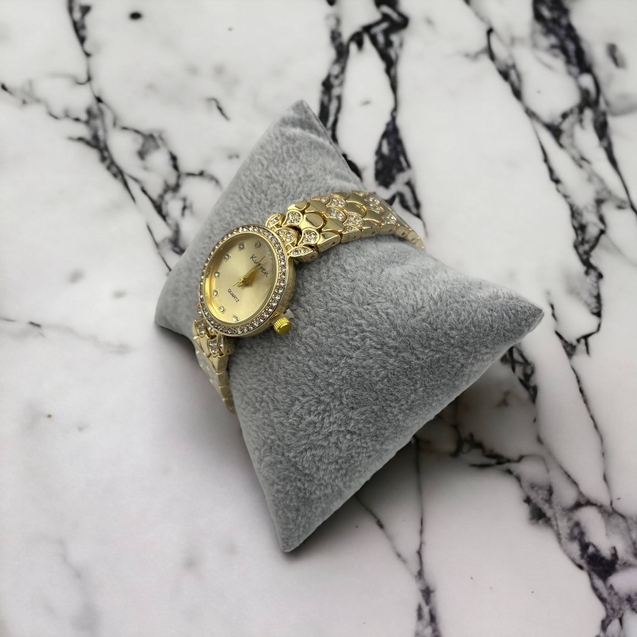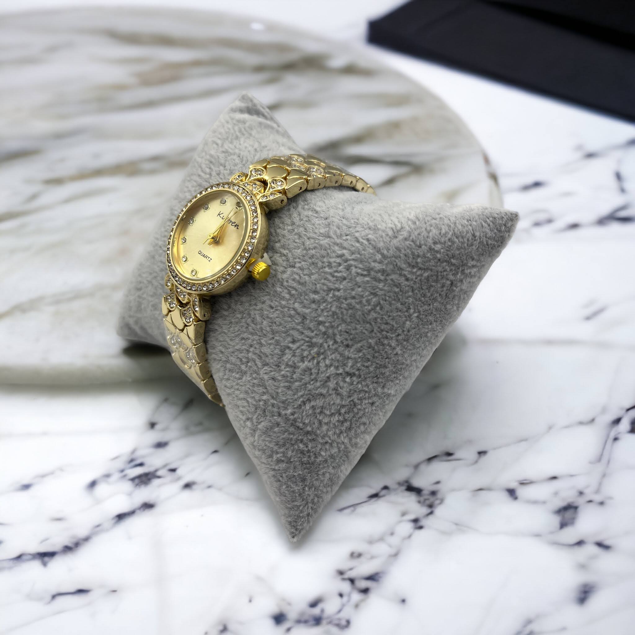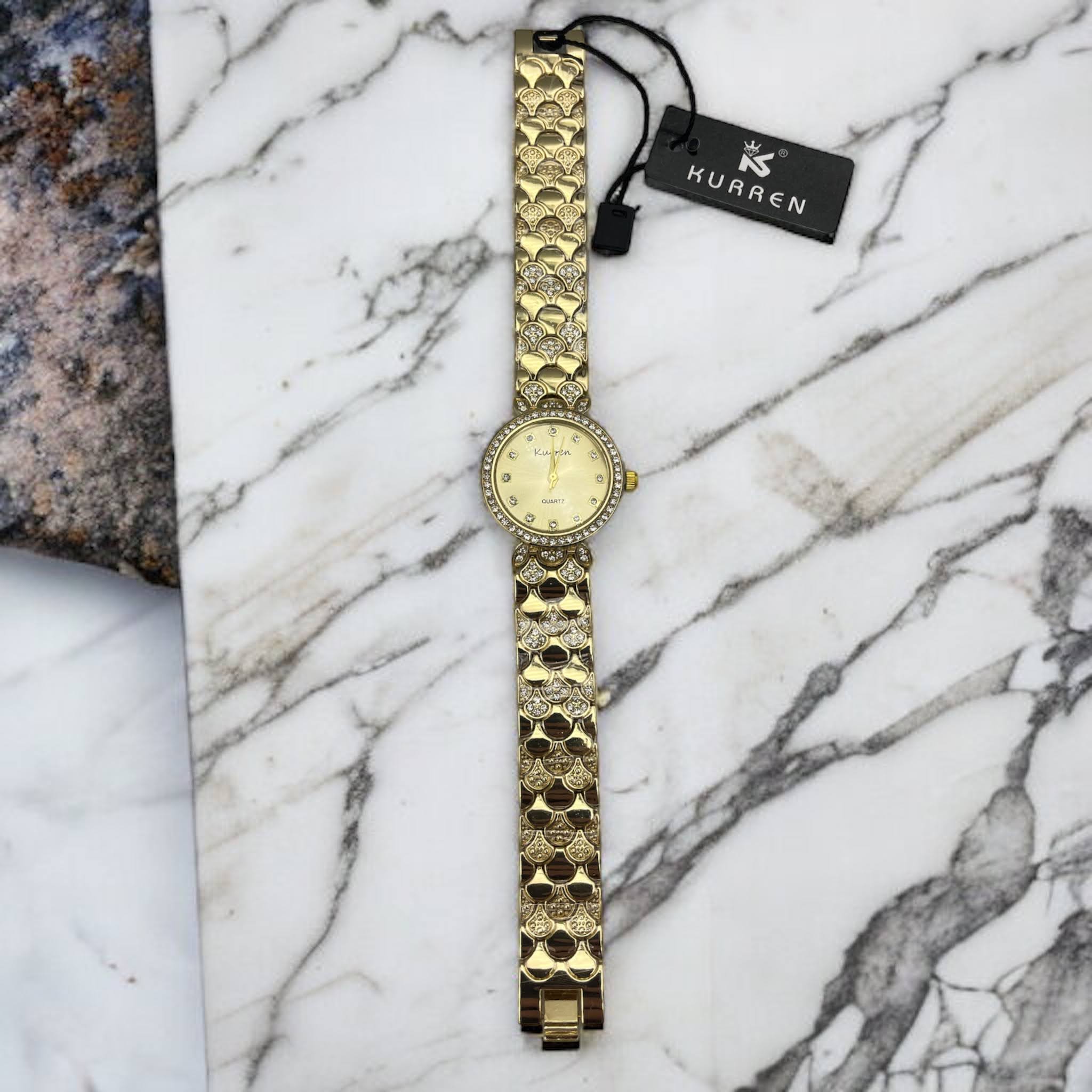 Zegarek na złotej, ciekawej bransolecie z cyrkoniami. Bransoleta z możliwością skrócenia we własnym zakresie.