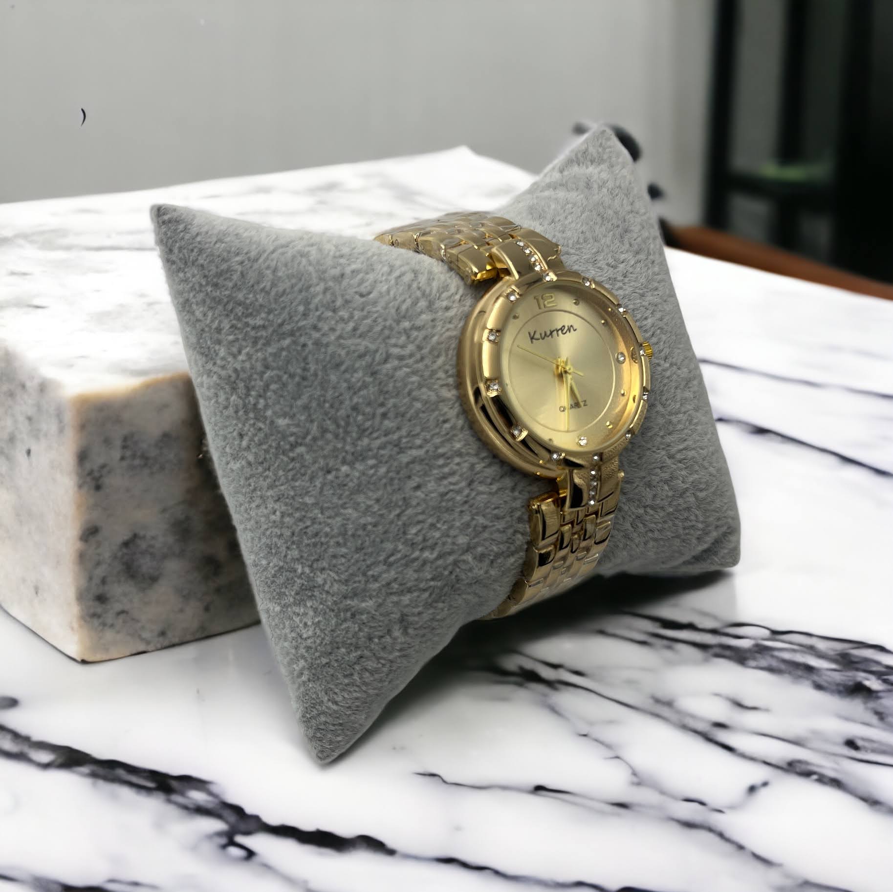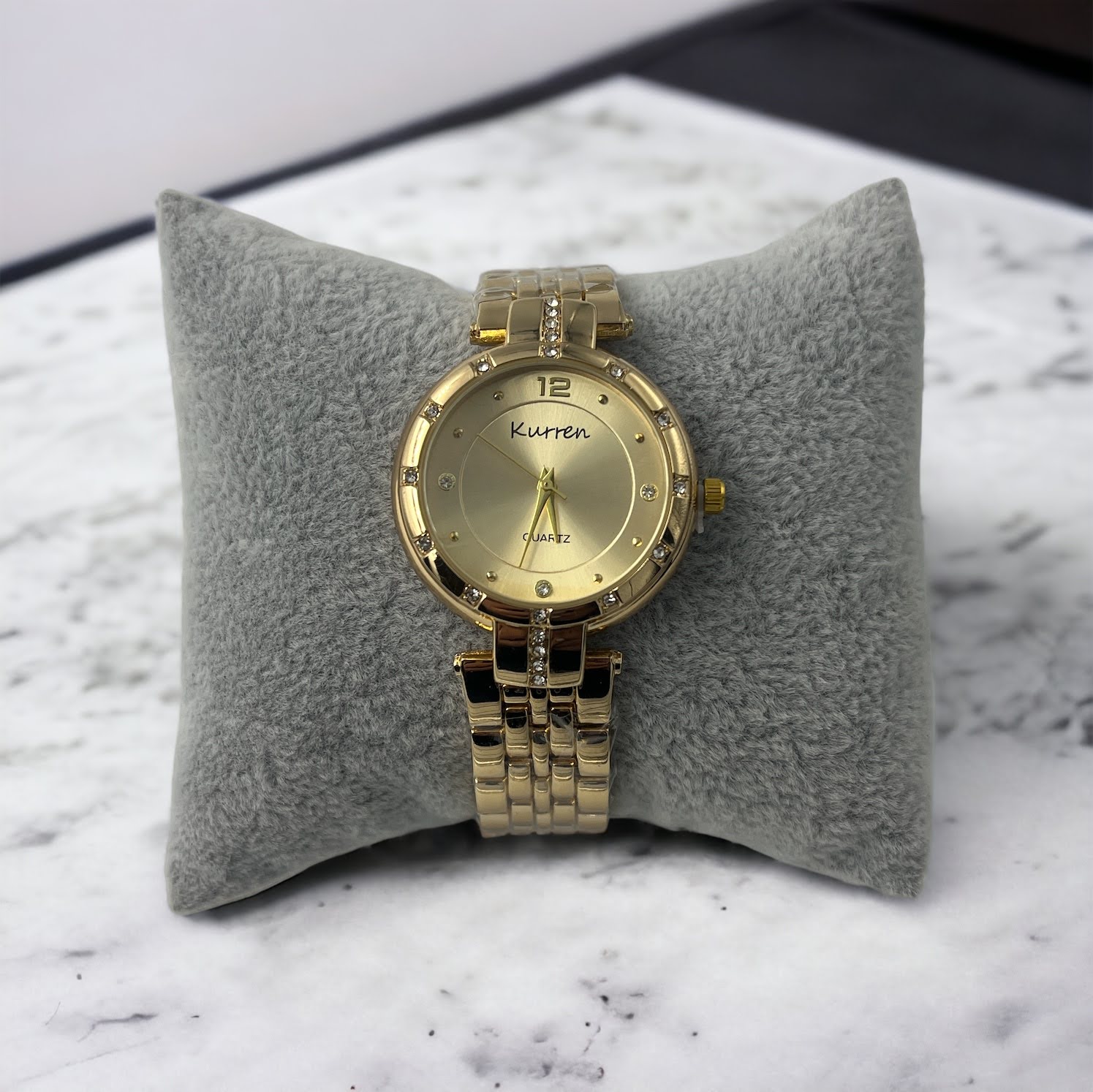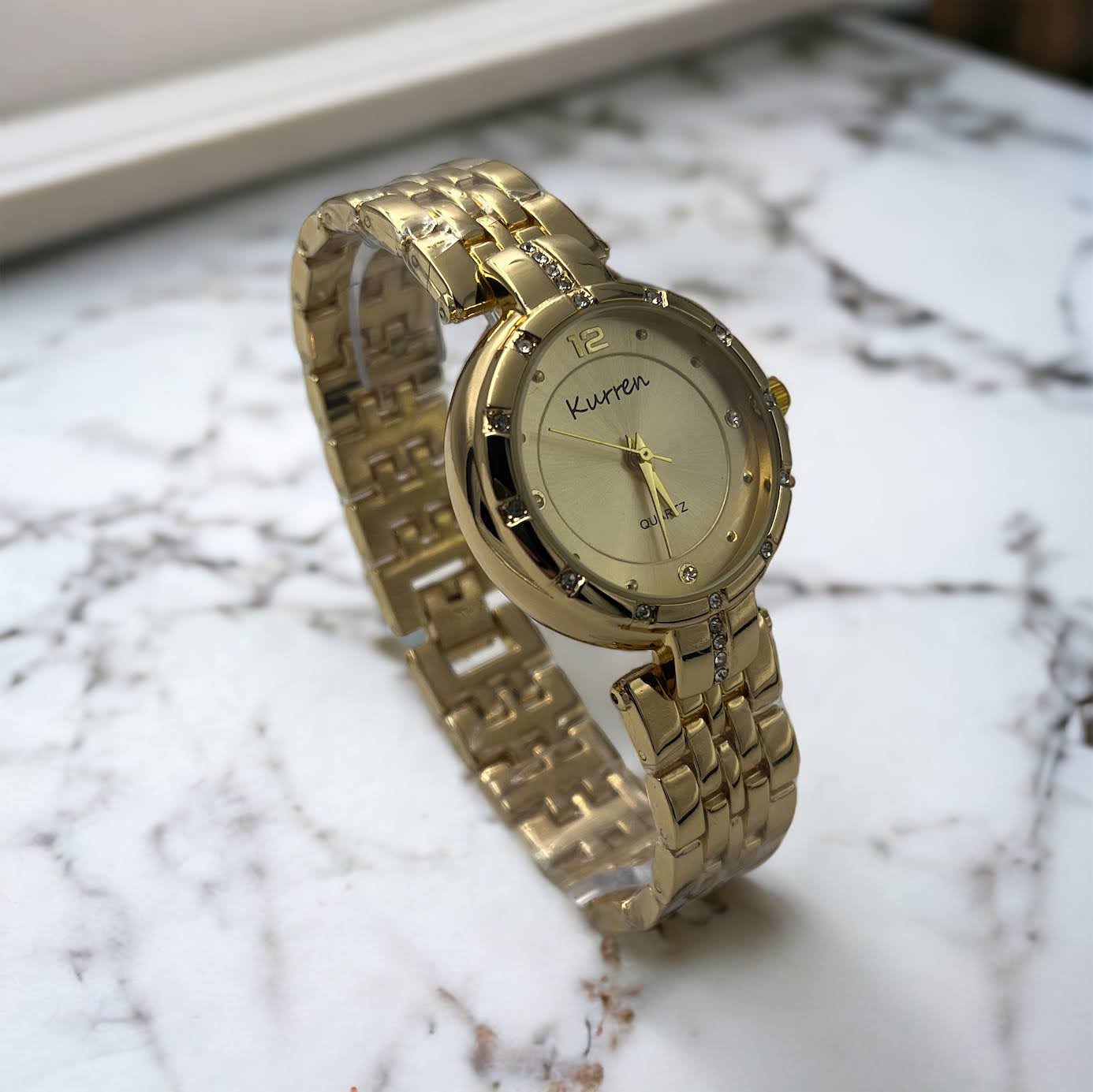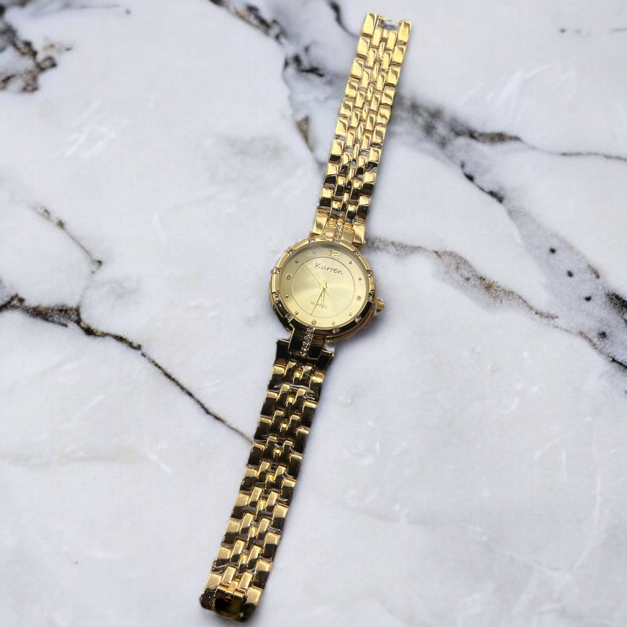 Zegarek na złotej, ciekawej bransolecie. Bransoleta z możliwością skrócenia we własnym zakresie.
